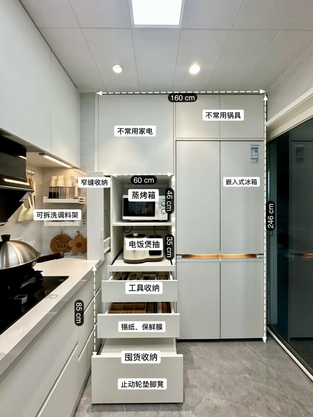 做了电器高柜,增加了收纳空间,台面也不会乱糟糟了,电器、工具还有不常用的锅具都能放得下。