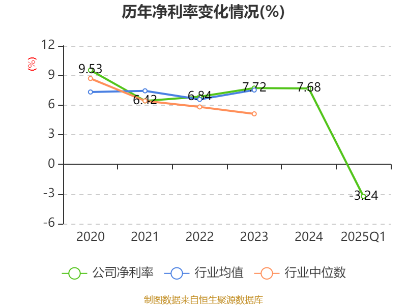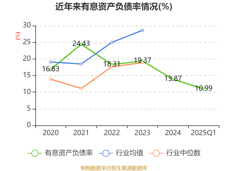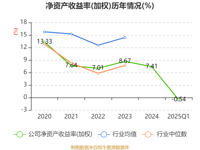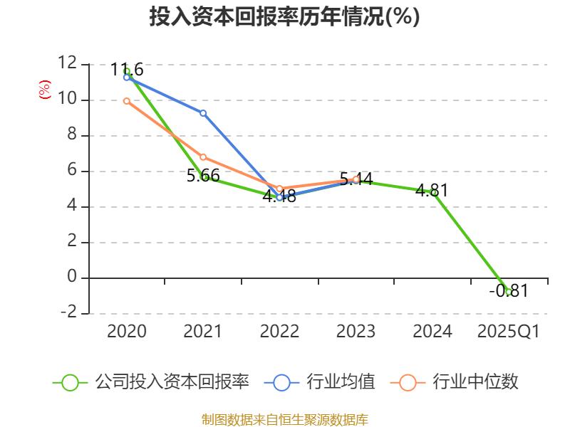 盈利能力方面, 2025年一季度公司加权平均净资产收益率为-0.54%,同比下降1.29个百分点。公司2025年第一季度投入资本回报率为-0.81%,较上年同期下降1.02个百分点。
