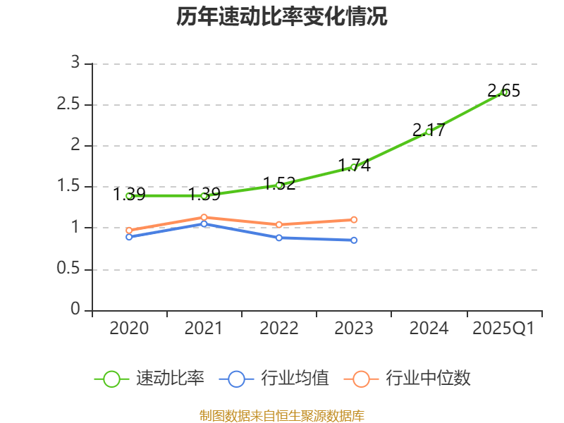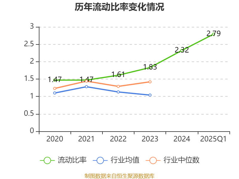 2025年第一季度,公司流动比率为2.79,速动比率为2.65。