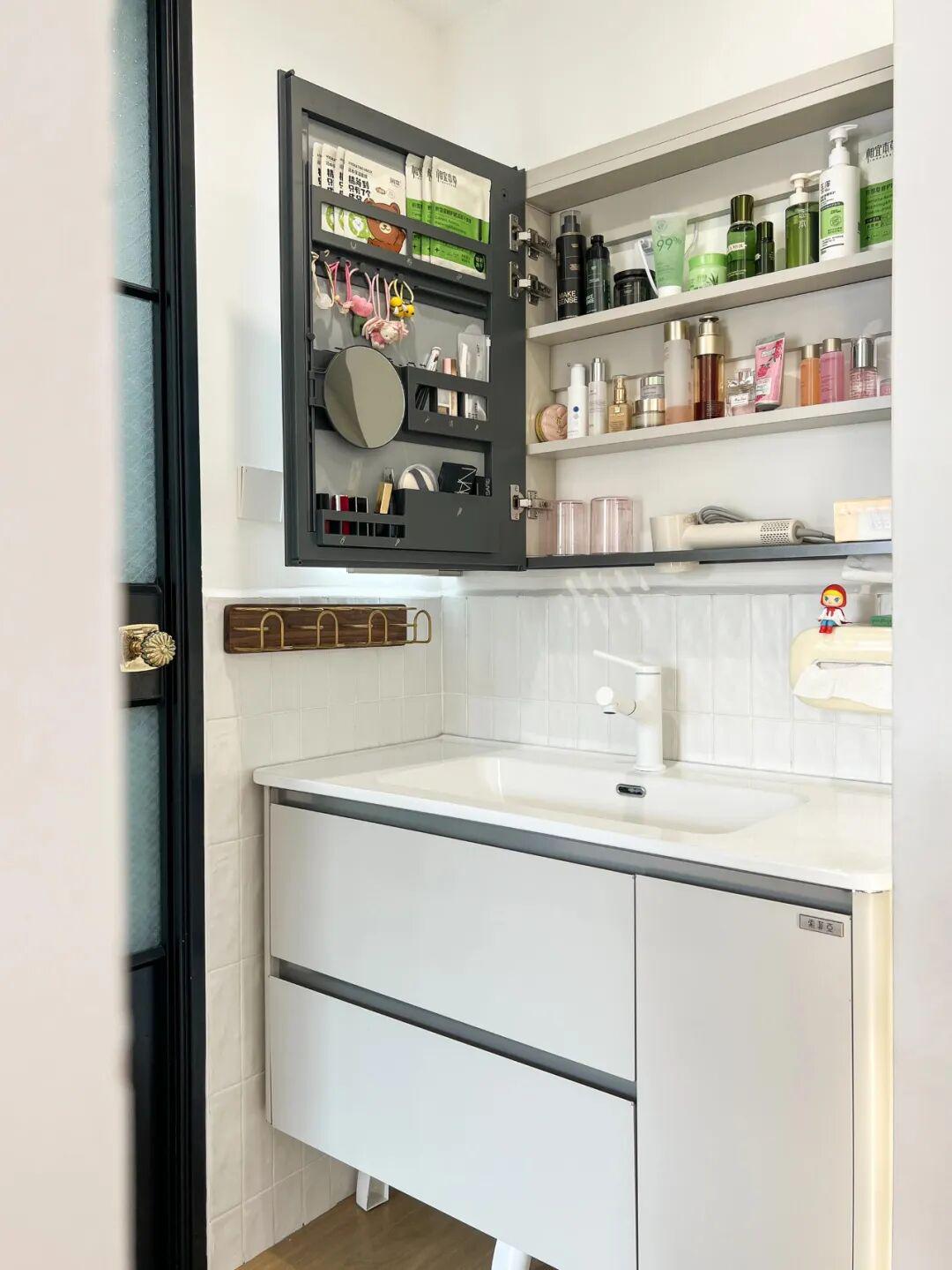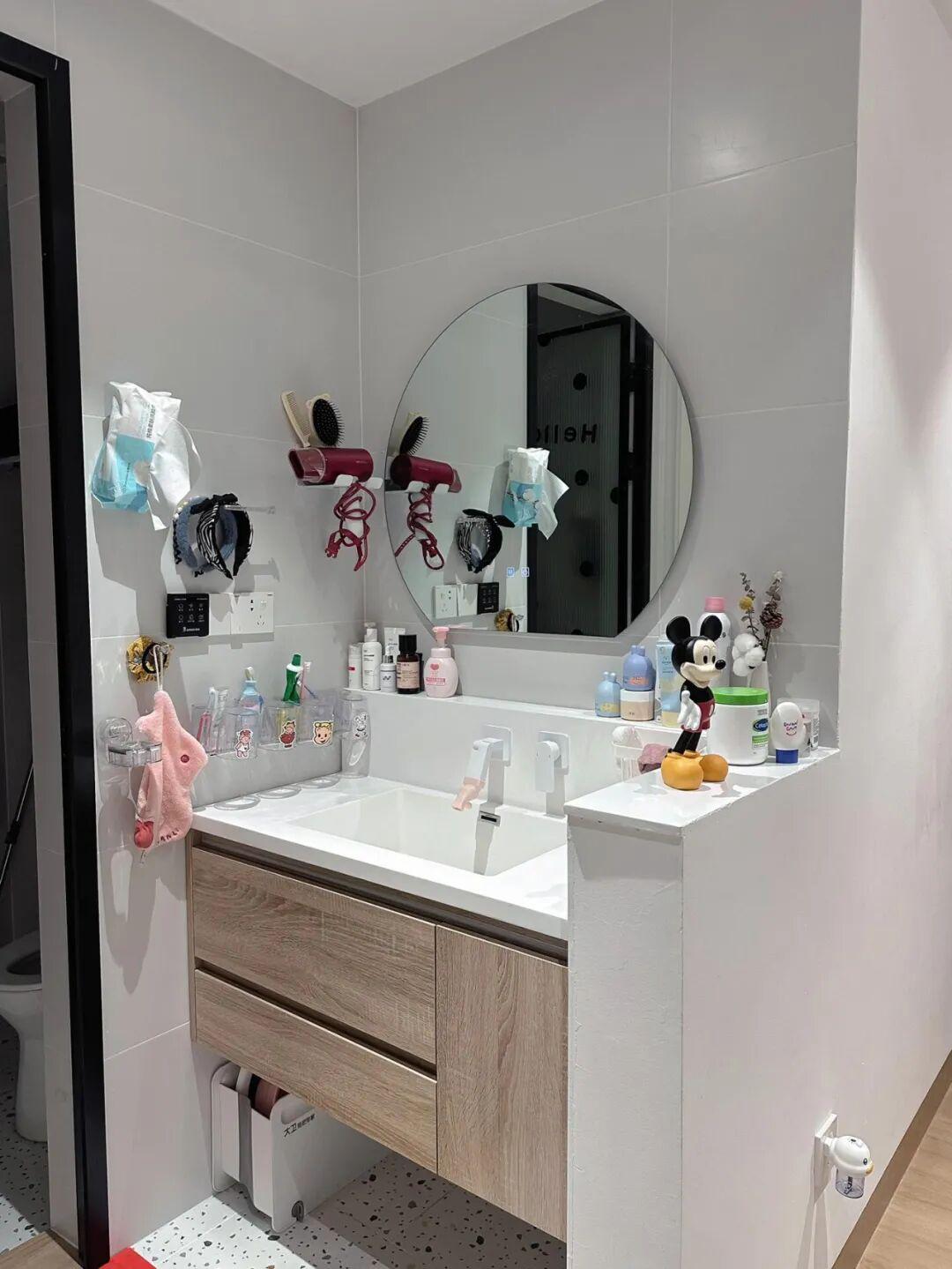 还有人把洗手池外移,结果一家人的洗漱用品全暴露在外,乱糟糟的不说,上完厕所没洗手就碰门把手,卫生问题也让人闹心。要是平时不爱收拾,洗手池外移真应该慎重。