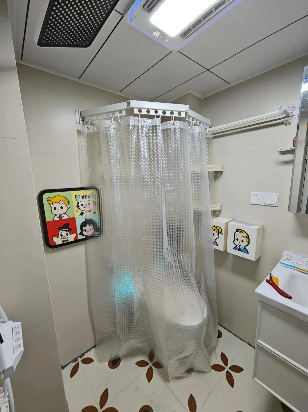更有网友玩出了新花样,不遮淋浴区反倒把智能马桶遮起来,能挡住溅水就行,这脑洞居然还挺实用!