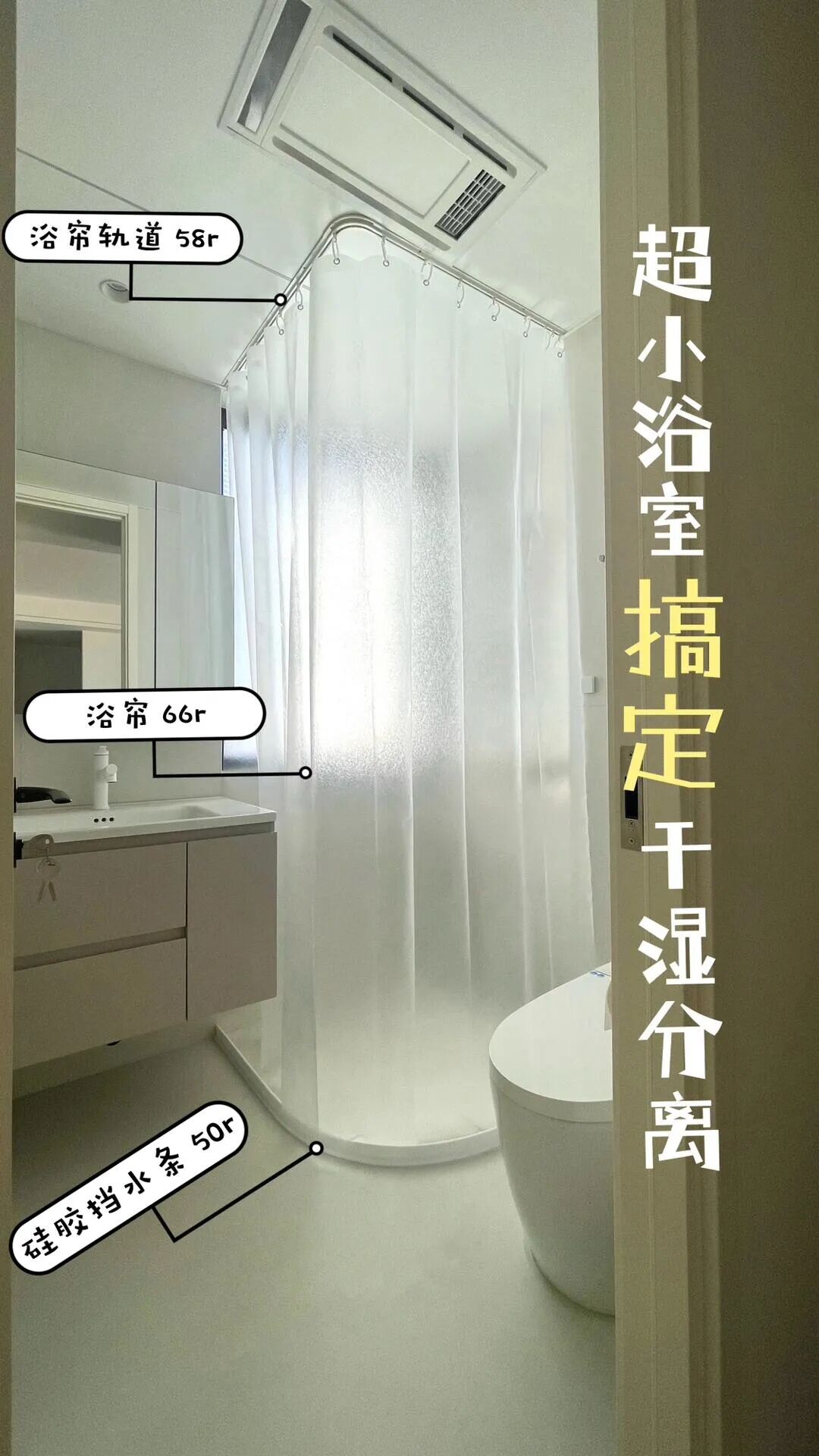 比起玻璃隔断,浴帘+挡水条才是小卫生间的省心之选,穷 装界的“黄金搭档”。